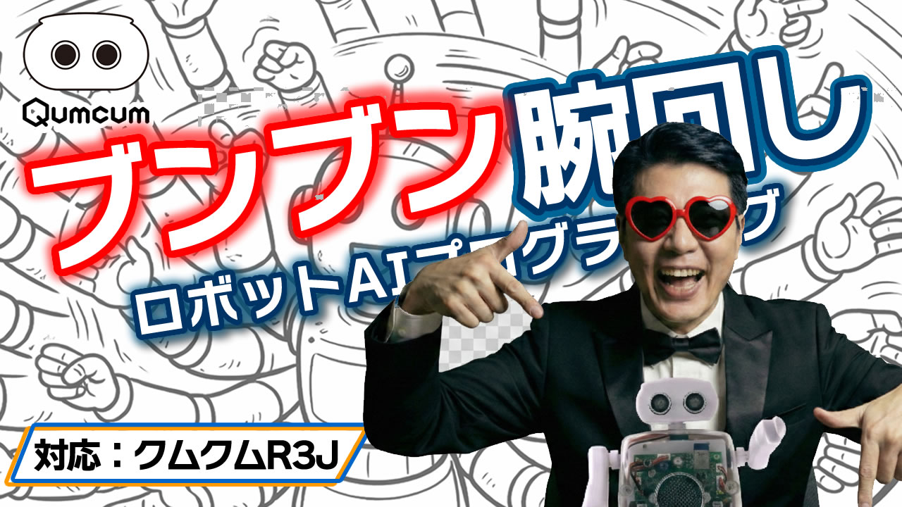 クムクムの距離センサーと組み合わせ、「障害物が近づいたら腕を振って警告する」といったインタラクティブなプログラムへの発展が可能です。